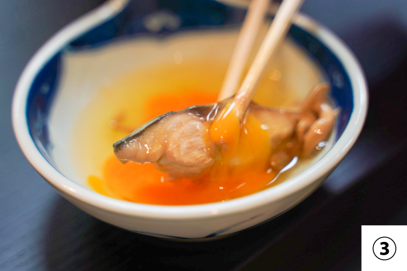 ⑤サバに味が浸み込できたら弱火にし、溶き卵をからめて食べる。