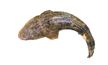 口が大きく、目は左側についている。左側だけを表にして、地面に水平に泳いでいる。