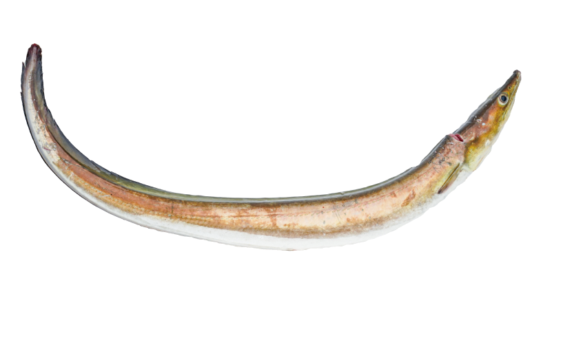 切り身で販売されることが多いため全身を見ることは少ないが、カラダはウナギのように細長く、鋭い歯を持っている。